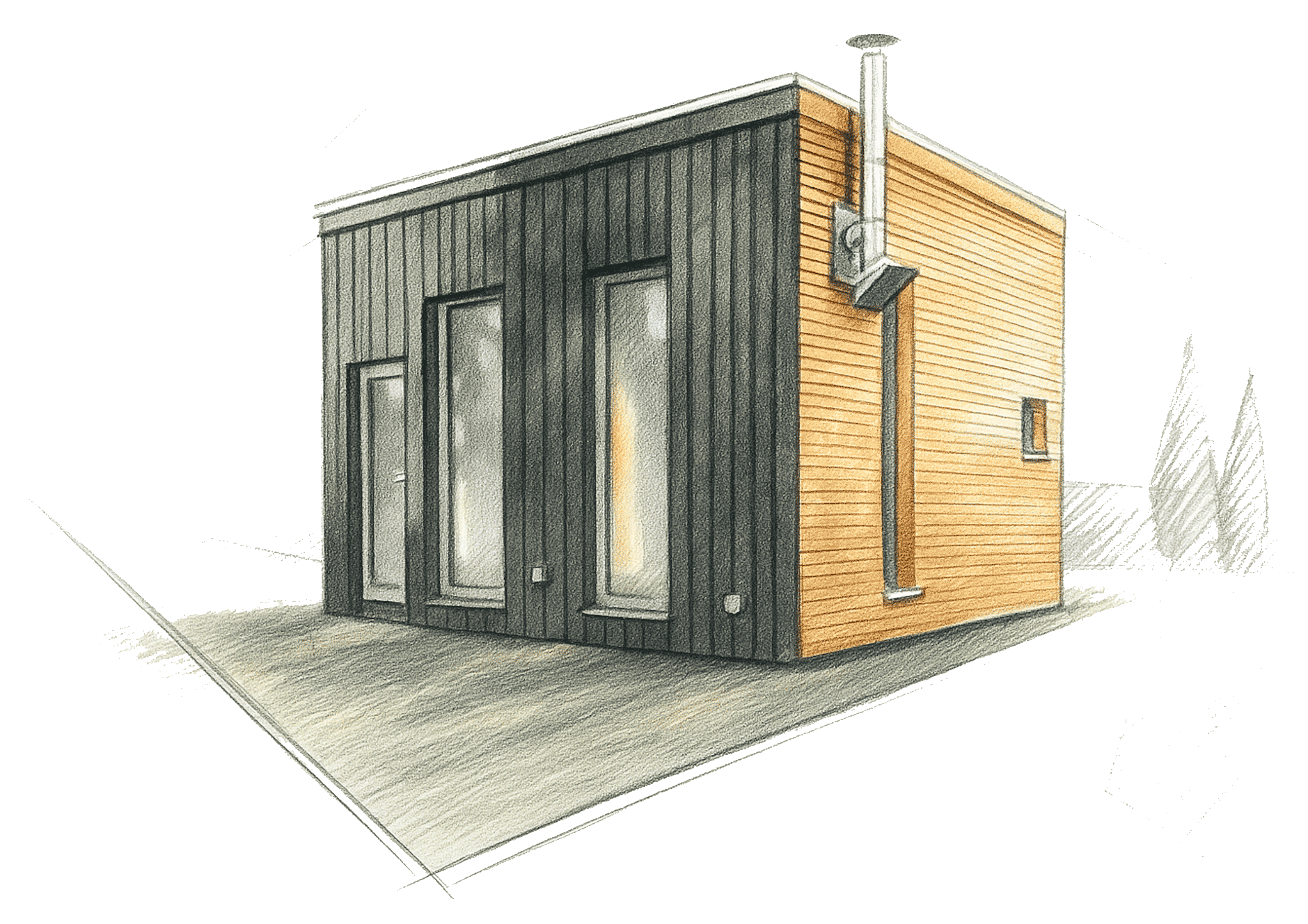 Das Klötzchen ist die kleinste Einheit unseres Baukastensystems – ideal für Singles, Paare oder als Gästehaus. Mit Grundflächen ab 30 m² bietet es alles, was man zum Leben braucht: Wohnraum, Bad, Küche und Stauraum – effizient geplant und hochwertig umgesetzt. Besonderheiten: